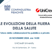 Evento di Confindustria Piemonte nato per mettere a confronto gli attori del mondo della salute con produzione, ricerca e sviluppo e servizio sanitario e assistenziale pubblico e privato; lunedì 25 novembre ore 14:00