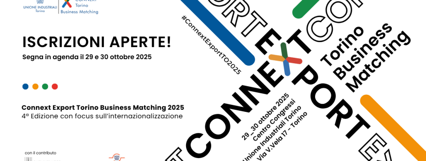 Mercoledì 29 e giovedì 30 ottobre 2025 al Centro Congressi Unione Industriali Torino (Via V. Vela 17, Torino) torna l’appuntamento annuale con Connext Torino Business Matching, che quest’anno evolve in un nuovo format: Connext Export.