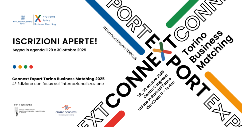 Mercoledì 29 e giovedì 30 ottobre 2025 al Centro Congressi Unione Industriali Torino (Via V. Vela 17, Torino) torna l’appuntamento annuale con Connext Torino Business Matching, che quest’anno evolve in un nuovo format: Connext Export.