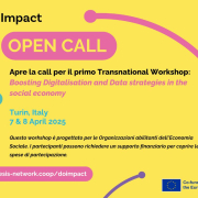 Il progetto europeo DO Impact lancia il suo primo 𝗧𝗿𝗮𝗻𝘀𝗻𝗮𝘁𝗶𝗼𝗻𝗮𝗹 𝗪𝗼𝗿𝗸𝘀𝗵𝗼𝗽: 𝗕𝗼𝗼𝘀𝘁𝗶𝗻𝗴 𝗗𝗶𝗴𝗶𝘁𝗮𝗹𝗶𝘀𝗮𝘁𝗶𝗼𝗻 𝗮𝗻𝗱 𝗗𝗮𝘁𝗮 𝗦𝘁𝗿𝗮𝘁𝗲𝗴𝗶𝗲𝘀 𝗶𝗻 𝘁𝗵𝗲 𝗦𝗼𝗰𝗶𝗮𝗹 𝗘𝗰𝗼𝗻𝗼𝗺𝘆 rivolto alle organizzazioni abilitanti dell’Economia Sociale che si terrà a Torino il 7 e l’8 aprile. 1000 euro di finanziamento a copertura di viaggio, vitto e spese per 25 organizzazioni selezionate.